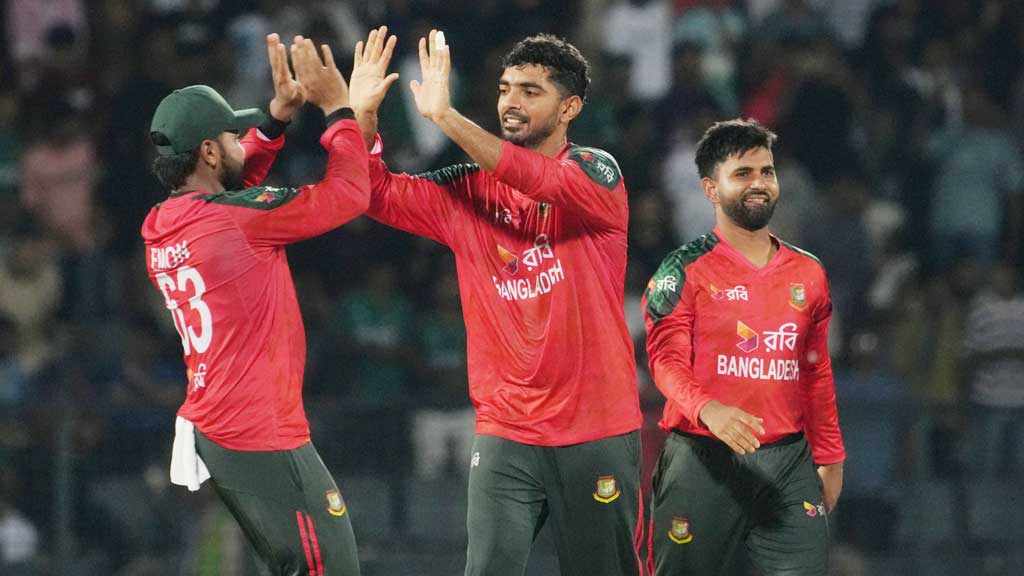 বাংলাদেশের পেস আক্রমণের নেতা তাসকিন আহমেদ জ্বলে ওঠেন বল হাতে। চার উইকেটের স্বাদ পান তিনি টি-টোয়েন্টিতে তৃতীয়বার। ম্যাচের সেরাও তিনিই।